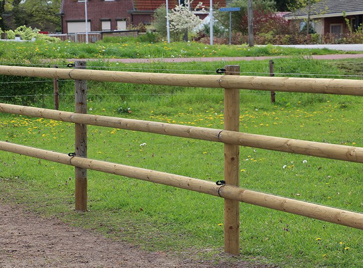 Dieser günstiger Zaun ist ausgestattet mit 3 Halbriegeln und ist imprägniert mit Tanalith-E (klasse 4). Dieser Weidezaun mit geschälten Pfosten und gefrästen Halbriegeln sieht sehr schön aus und ist eine preisgünstige Lösung für Ihre Umzäunung. Dieser Pferdezaun ist sehr beliebt zur Einzäunung von Weide, Reitplätzen und Paddocks.