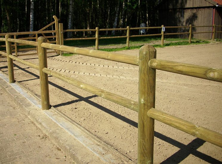 Die zylindrisch gefrästen Pfähle und Zaunriegel sind aufgrund des Koppelzauns so symmetrisch, dass man auf beiden Seiten des Zauns Pferde halten kann. Somit eignet sich dieser Zaun vorzüglich für die Weide, die Koppel oder Paddocks. Zaun besticht mit seiner perfekten Verarbeitung und ist sehr beliebt für die Einzäunung von Pferdekoppeln.