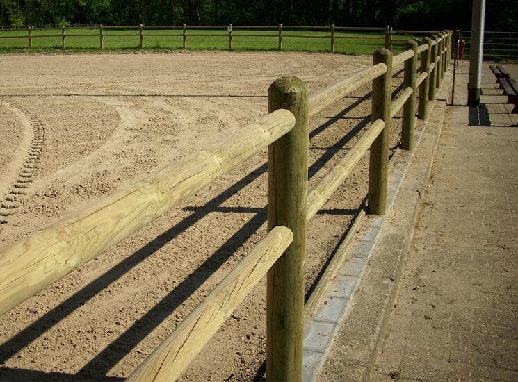 Dieses Holz Gartenzaun ist ausgestattet mit 2 runden Querbalken, die durch die runden Zaunpfosten gesteckt werden. Der Gartenzaun wird mit der Tanalith-E Imprägnierung geliefert, für ein lange Lebensdauer. Die Pfähle und Querbalken dieses Pferdezauns sind zylindrisch gefräst, wodurch der Zaun symmetrisch ist und es zulässt, dass man auf beiden Seiten des Zauns Pferde halten kann.