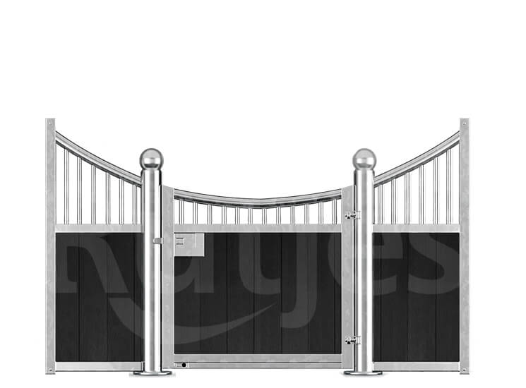 Die Standard-Pferdeboxen sind für kleinere Ponys deutlich zu groß, daher haben wir in unser Sortiment auch vorgefertigte Wände für die Kleinsten aufgenommen. Wir fertigen unsere Mini-Pferdeboxen ganz nach Ihren Wünschen an. Dadurch ist die Mini-Pferdebox sowohl für die kleinsten Shetland-Ponys und Falabellas, als auch für die größeren Ponys geeignet. Diese Vorderwand ist ausgestattet mit;