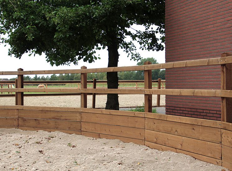 Die beliebteste Variante des Zauns für einen Longierzirkel ist der traditionelle Zaun. Dieser hat quadratische Pfosten und gerade Bretter. Sie können auch zwischen runden Pfosten oder halbrunden Zaunlatten wählen und so den Longierzirkel ganz nach Ihren Wünschen gestalten.