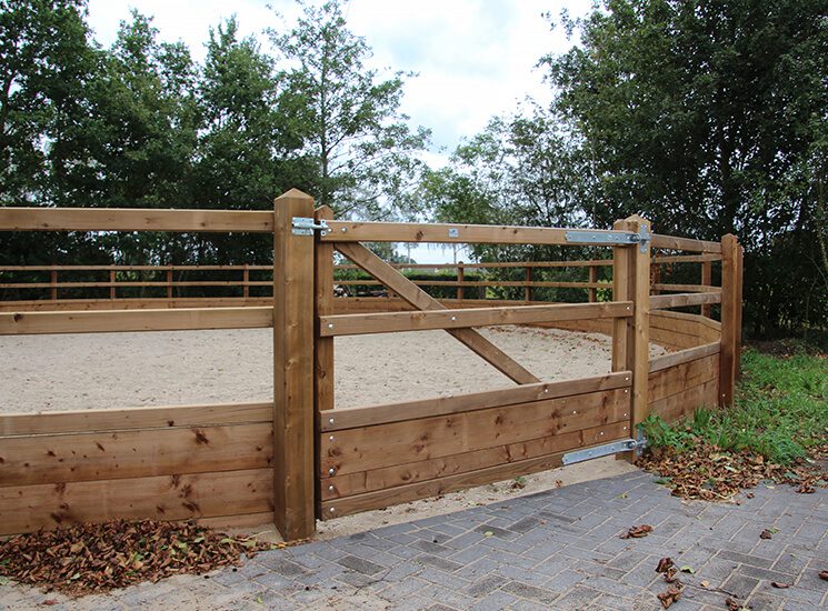 Wir stellen Roundpen in allen Größen und Ausführungen her. Von der luxuriösesten Konstruktion mit tropischem Hartholz bis hin zu den Einstiegsmodellen aus imprägniertem Holz. Unsere Longierzirkel erfreuen sich aufgrund ihres professionellen Aussehens und ihres attraktiven Preises großer Nachfrage. Dieses Longierzirkel ist ausgestattet mit;