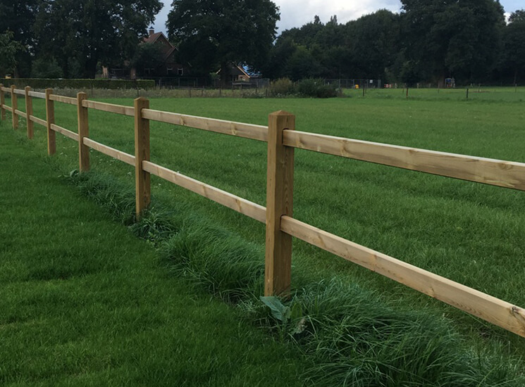 Dieser robuste Koppelzaun Holz wird mit 2 Zaunlatten geliefert. In unserem Webshop ist dieser Zaun auch mit 3 Zaunlatten erhältlich. Wir bieten dieses Zaunsystem in drei verschiedenen Imprägnierungen an. Diese Variante ist mit Tanalith-E imprägniert, was die Haltbarkeit deutlich verlängert. Beim Stecksystem werden die Zaunlatten durch die Pfosten geführt. Die Zaunlatten sind ganze 6 Meter lang. Dadurch verbinden sie jeweils 3 Pfosten miteinander – das sorgt für zusätzliche Stabilität der Koppelzaun.