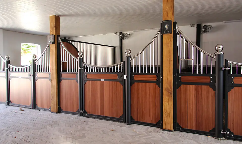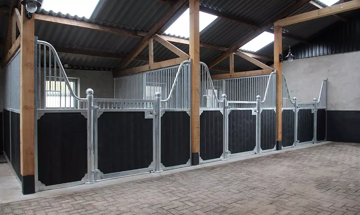 Diese „Cambridge“-Pferdeboxen haben ein klassisches Design und zeigen in diesem Projekt, dass sie gut mit den „Birmingham“-Vorderwänden kombiniert werden können.