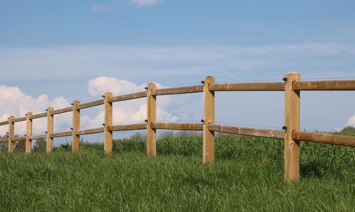 Für dieses Projekt durften wir die ländliche Koppelzaun Holz „Robust Tanalith-E“ inklusive Stromdraht montieren. Der Zaun bietet eine natürliche Optik und fügt sich harmonisch in jede Landschaft ein. Trotz des Stecksystems ist dieser Zauntyp auch für hügeliges Gelände geeignet.